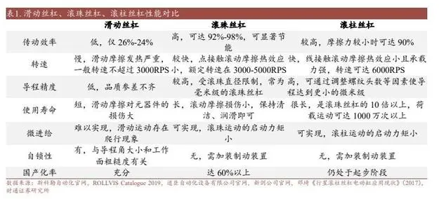 1.1 滾珠絲杠傳動(dòng)效率最高,行星滾柱絲杠綜合性能較強(qiáng)