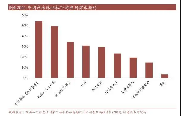 在下游應(yīng)用場(chǎng)景中,目前國(guó)內(nèi)數(shù)控機(jī)床、機(jī)器人與生產(chǎn)線以及航空航天與軍工為滾珠絲杠最主要應(yīng)用去向。隨著全球智能化產(chǎn)業(yè)鏈的不斷擴(kuò)張和自動(dòng)化在各領(lǐng)域的不斷深入,人型機(jī)器人、高檔數(shù)控機(jī)床、電動(dòng)機(jī)械等下游領(lǐng)域有望不斷為包括滾珠絲杠在內(nèi)的滾動(dòng)功能部件提供市場(chǎng)增量,從而擴(kuò)大滾動(dòng)功能部件的總市場(chǎng)空間。